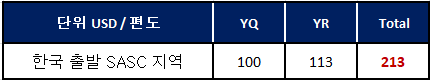 한국 외 출도착 노선의 경우,노선별/구간별로 적용 금액 및 시기가 상이합니다(GDS 참조 요망)